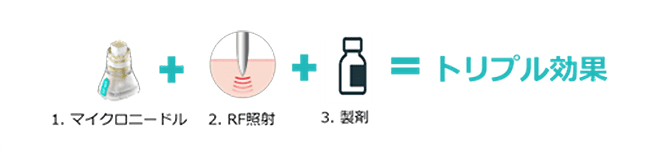 RF照射の熱による肌活性(線維芽細胞の活性)に加え、極細針によってできた傷が回復する過程でも創傷治癒効果が働くことから、従来のマイクロニードル治療法よりも効果実感に優れたお勧めの治療法です。
